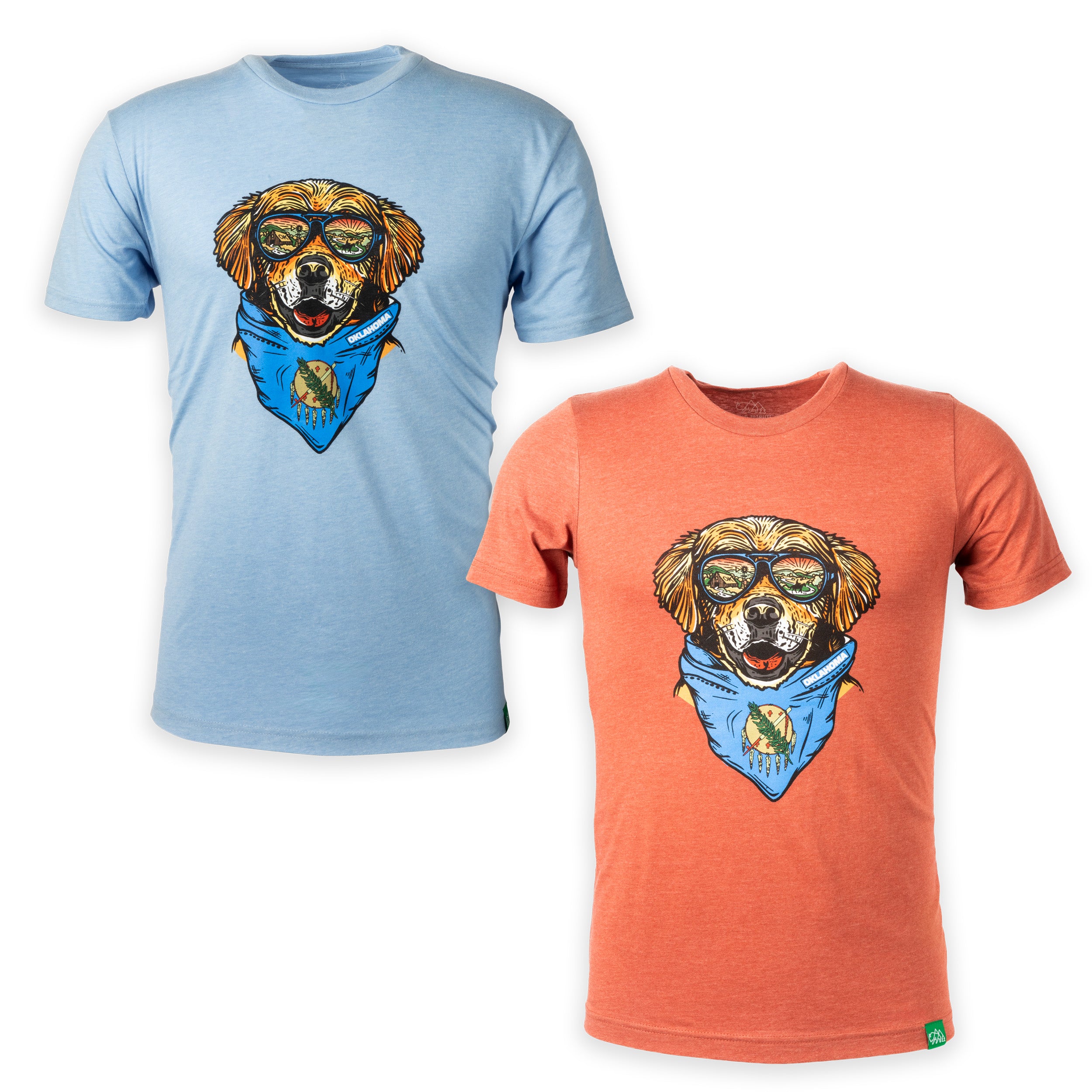 Get ready to conquer the great outdoors in style with Maximus the Oklahoma Mountain Dog Shirt by Wild Tribute! This short sleeve tee features our loveable mascot sporting a bandana adorned with the Flag of Oklahoma. In partnership with Wild Tribute, this shirt is perfect for any adventure.